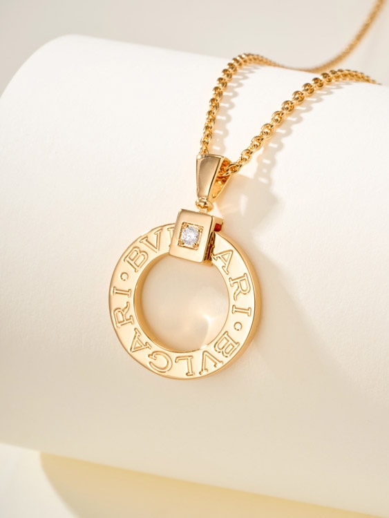 Bulgari logo engraved necklace logo letters on round pendant-3585