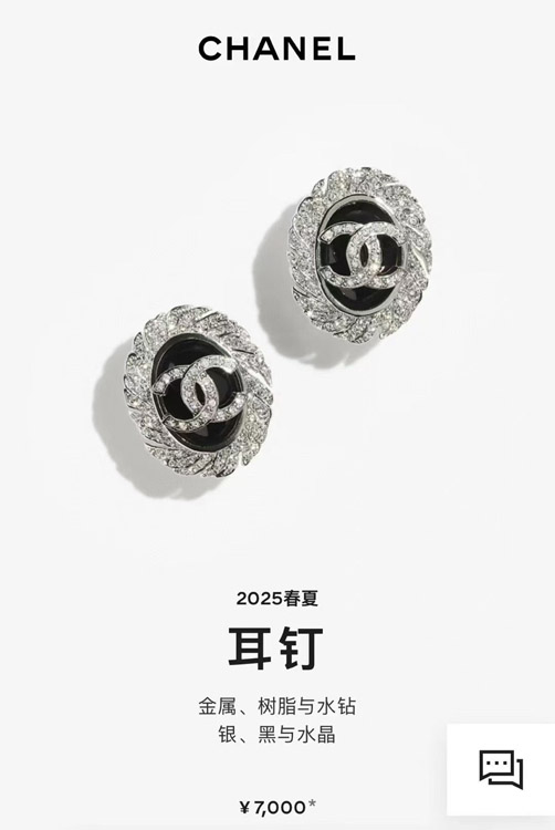 Celine black oval button silver full diamond double C earrings-3900