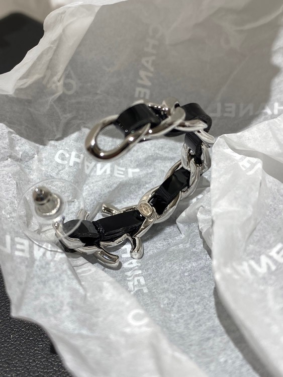 Chanel silver leather hoop earrings-3596