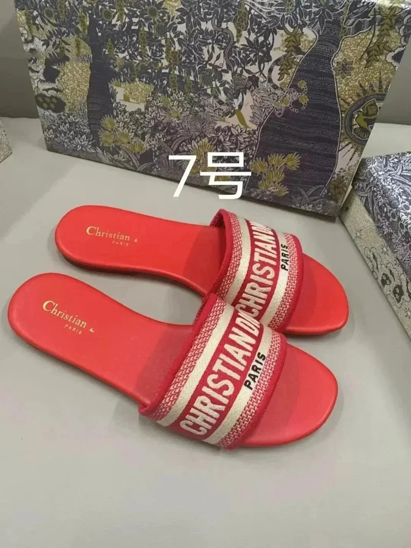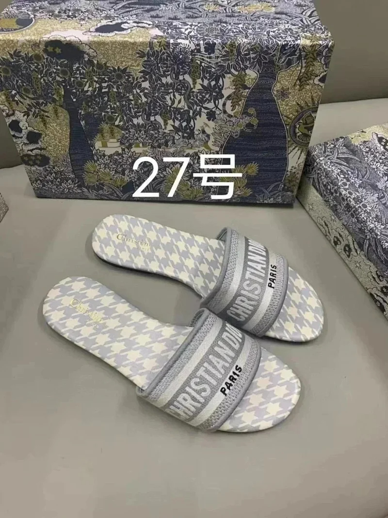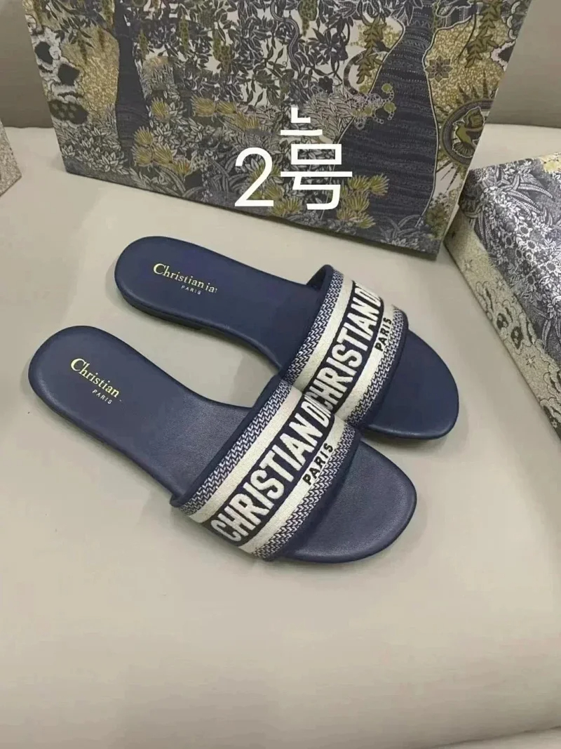 Home > Dior 2025 new summer genuine leather letter embroidered outerwear women's slippers-2336