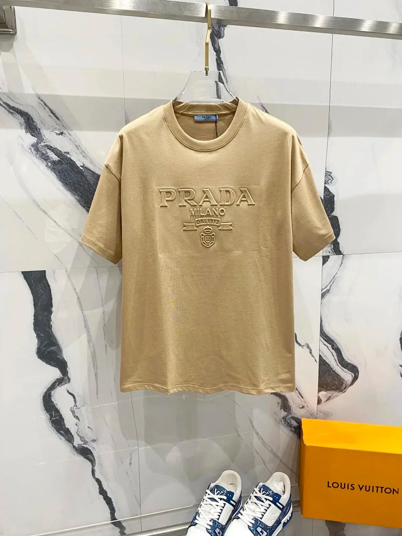 Prada Solid Color Logo Printed Round Neck Pullover Short Sleeve T-Shirt (39 styles)-2837