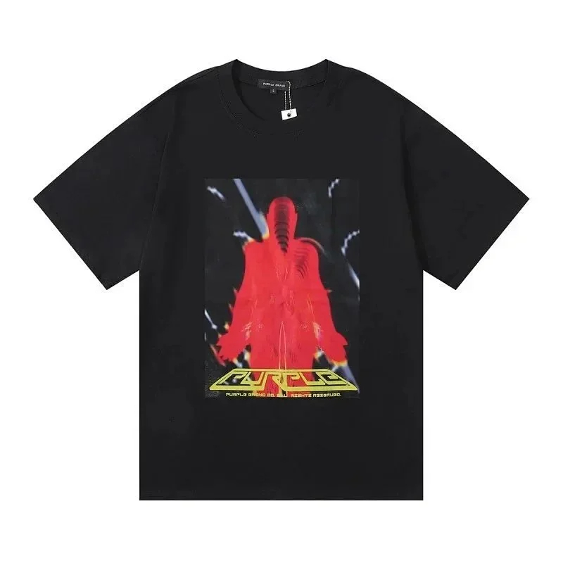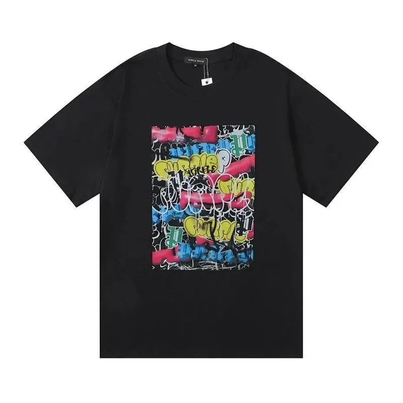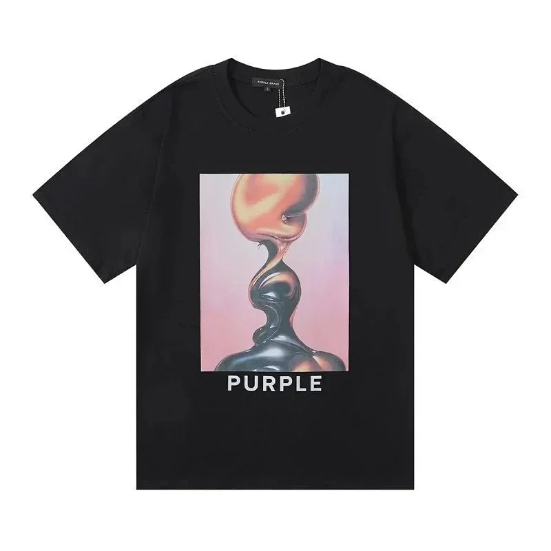 PURPLE Letter pattern printed short-sleeved T-shirt for men and women American high street half-sleeve-1886