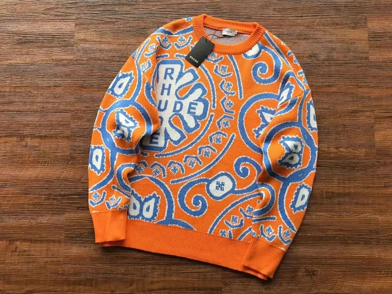 RHUDE New Simple Contrast Color Design Letter Loose Sweater-2141