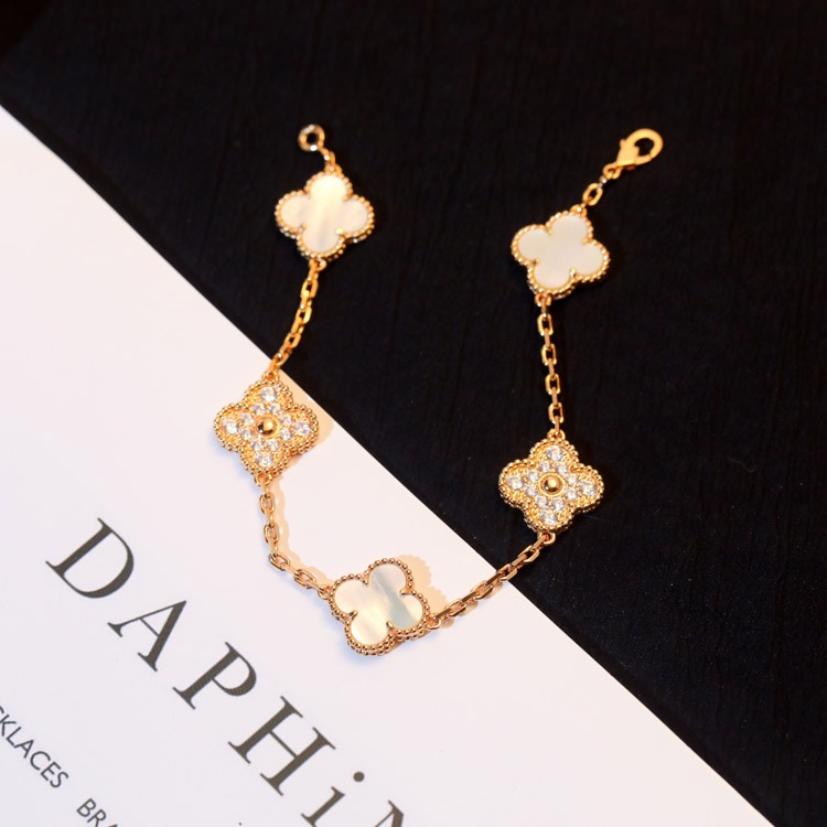 Van Cleef & Arpels classic five-flower diamond white mother-of-pearl bracelet-3781
