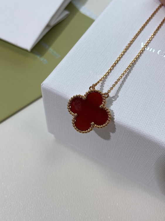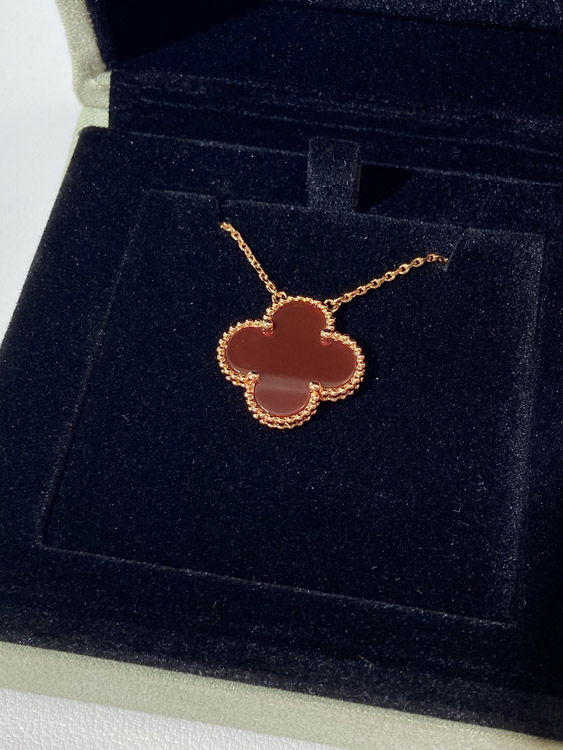 Van Cleef & Arpels four-leaf clover gold red obsidian wide necklace-3790