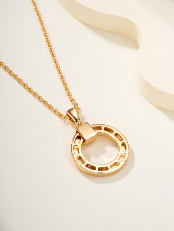 Bulgari logo engraved necklace logo letters on round pendant-3585