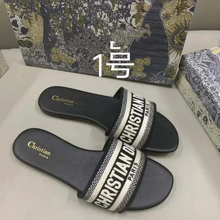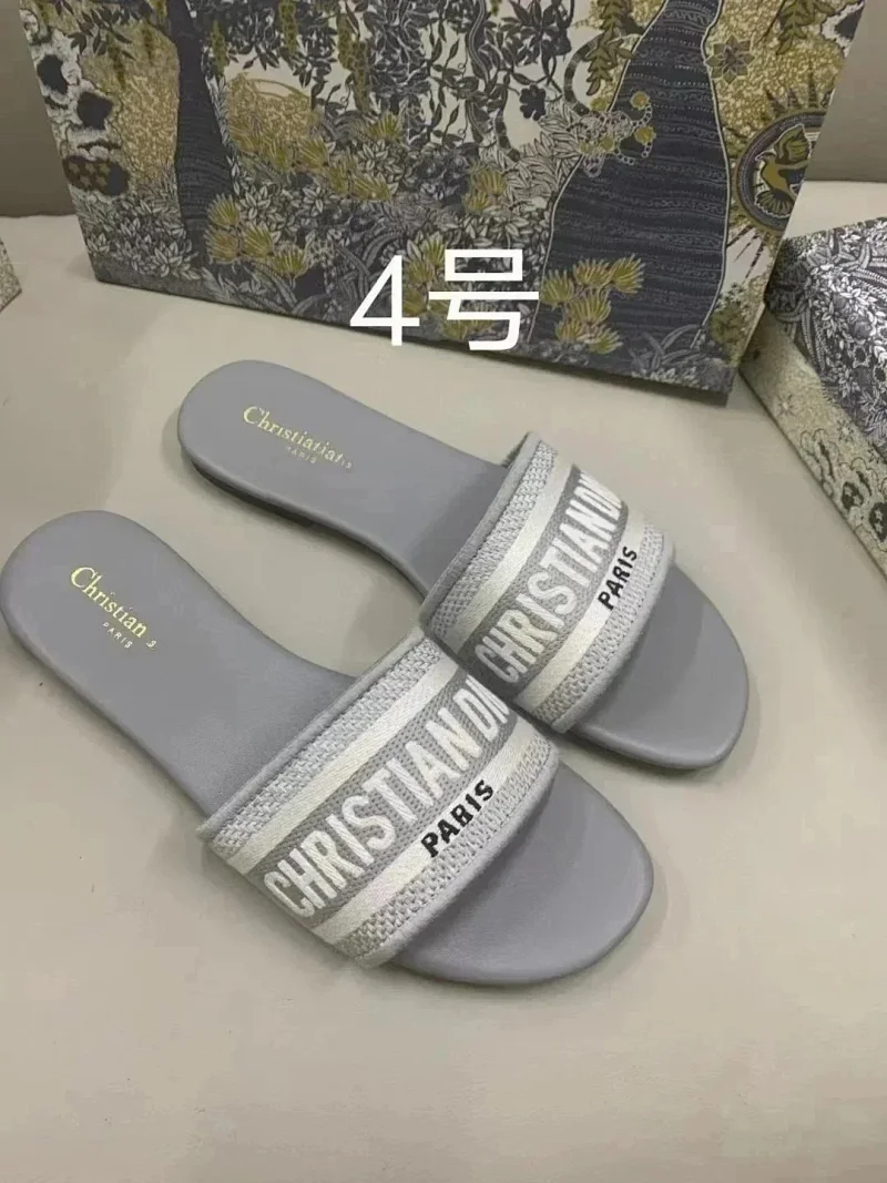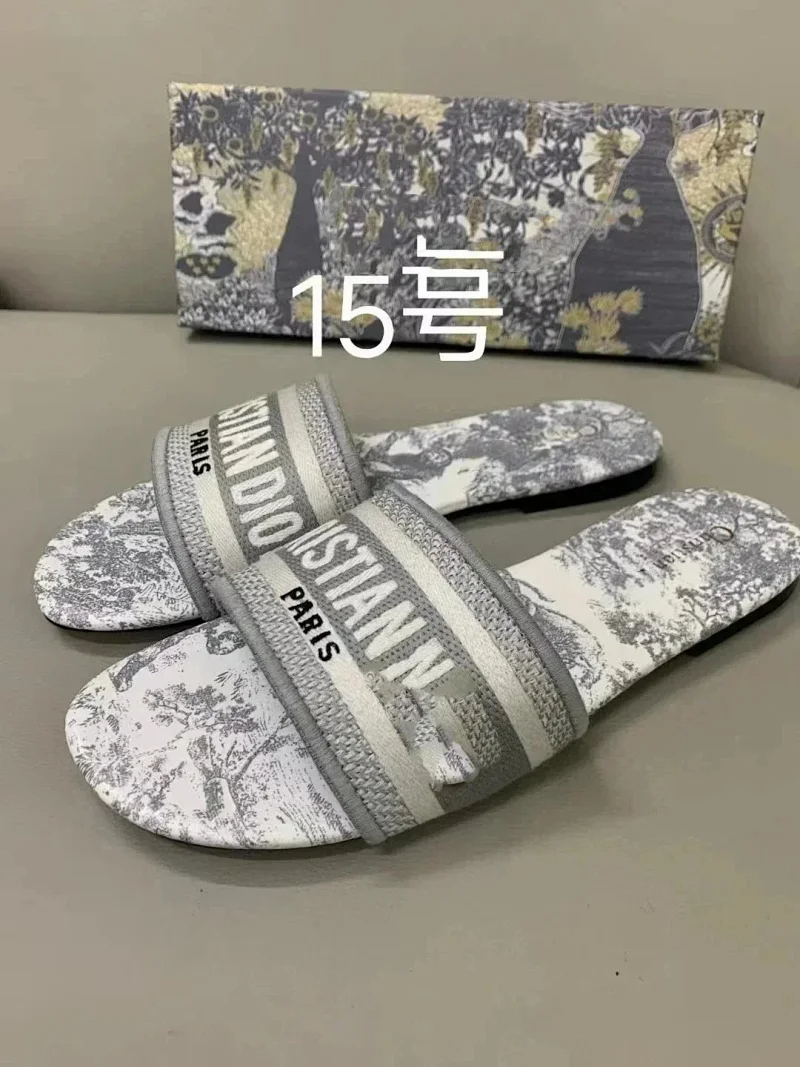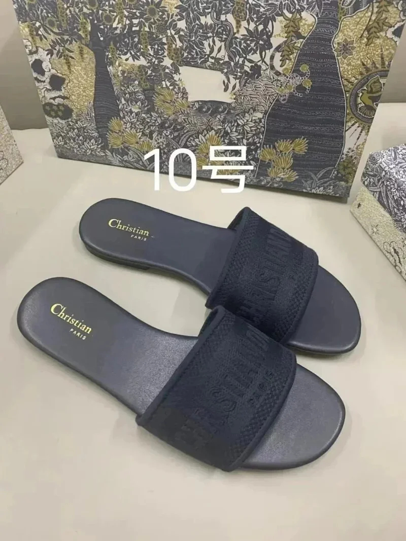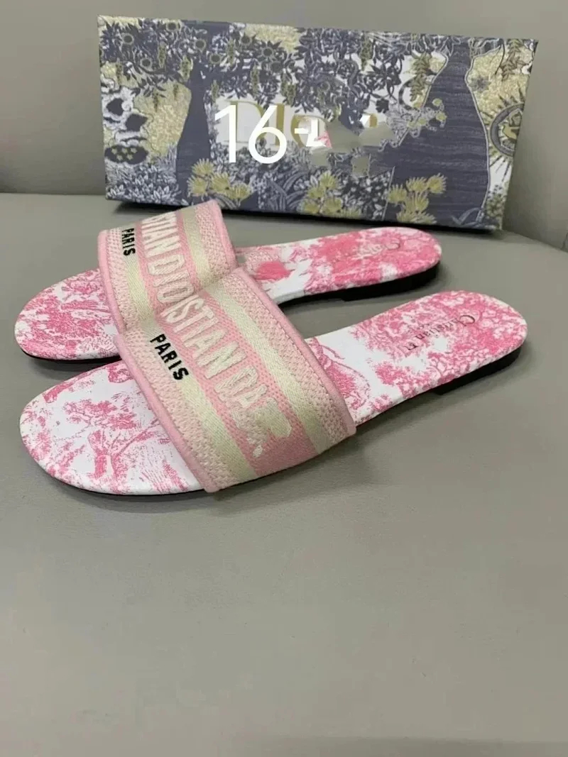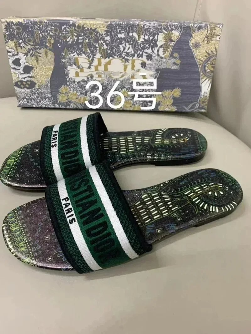 Home > Dior 2025 new summer genuine leather letter embroidered outerwear women's slippers-2336