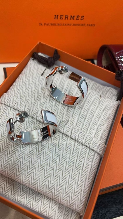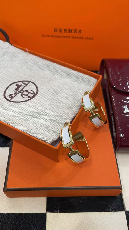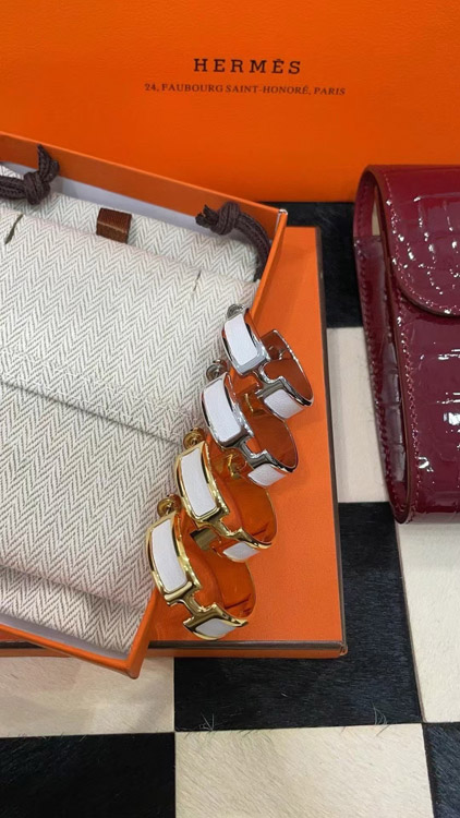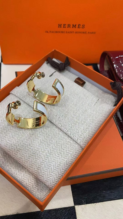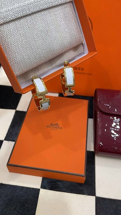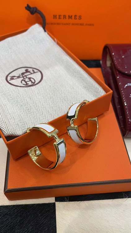 Home > Hermès metal H letter white leather earrings-3714