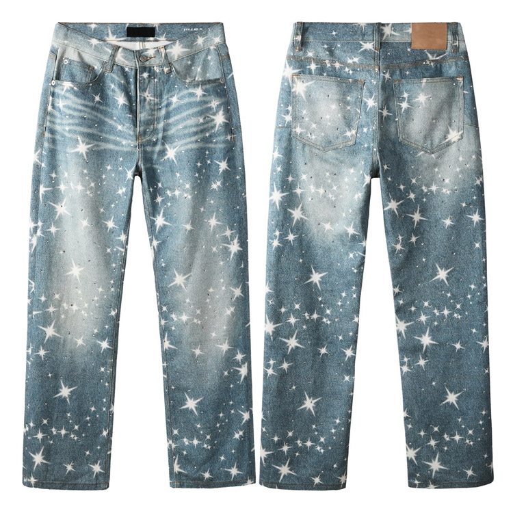 Purple Brand new diamond-studded slim-fit skinny jeans with wide legs-4247
