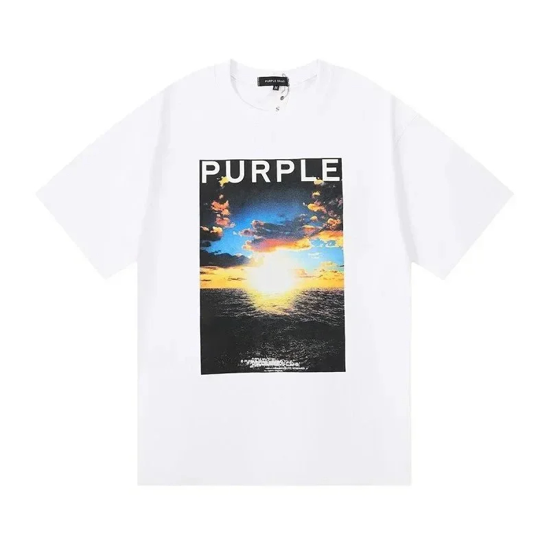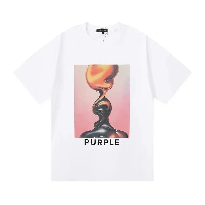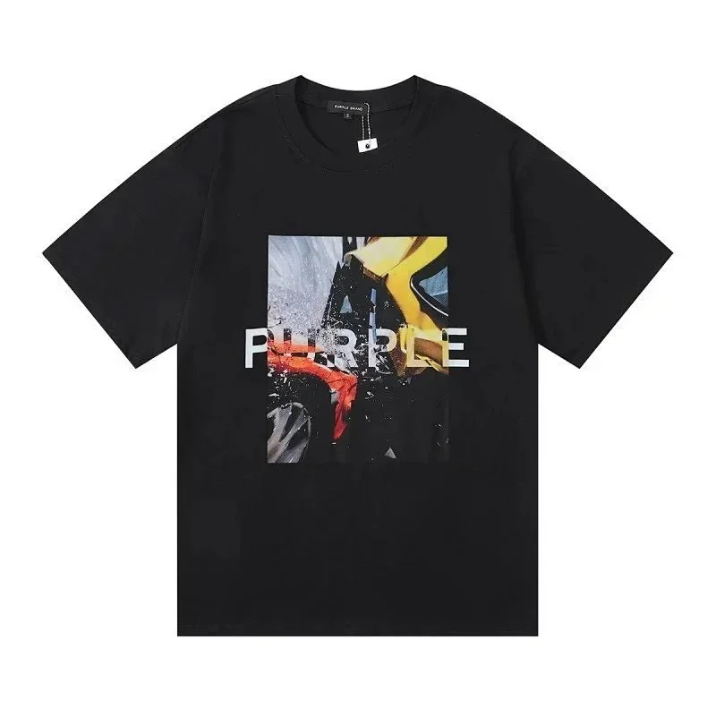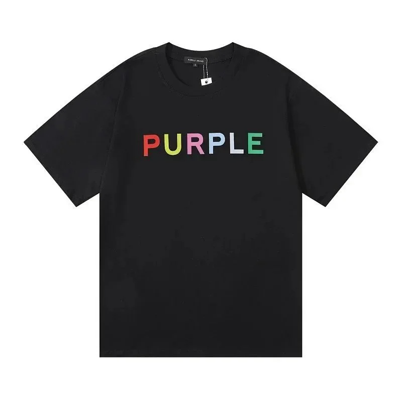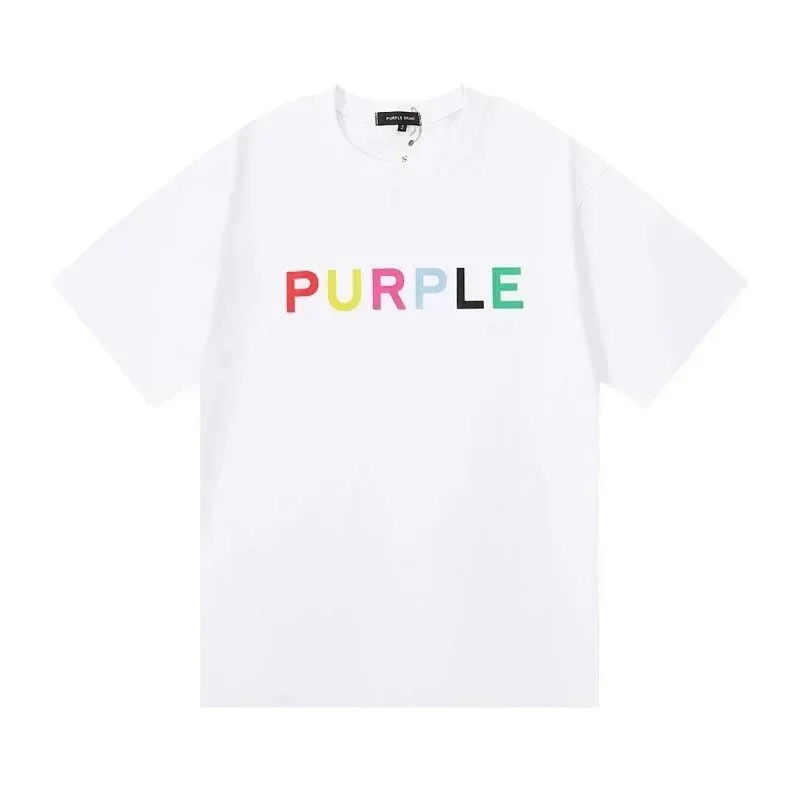 PURPLE Letter pattern printed short-sleeved T-shirt for men and women American high street half-sleeve-1886