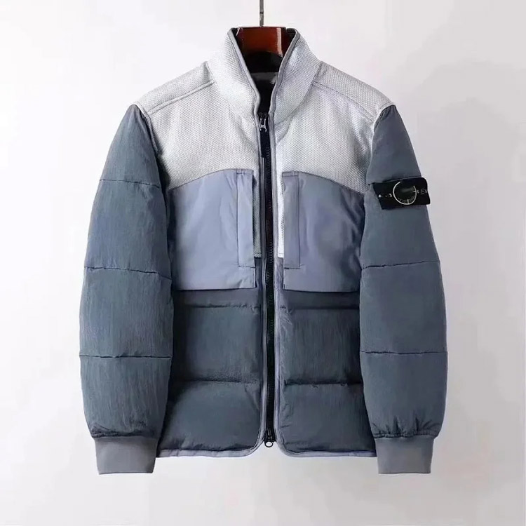 Stone Island hooded zipper stand collar patchwork design down jacket-4393